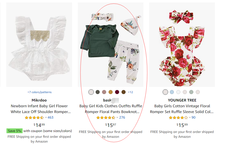 1. Use the following keywords to search on Amazon.com or Amazon App:Baby Girl Ruffle Rompers