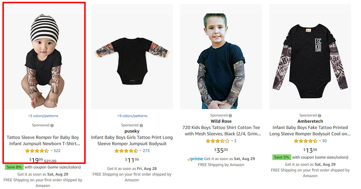 1. Use the following keywords to search on Amazon.com or Amazon App:tattoo sleeve romper for baby boy