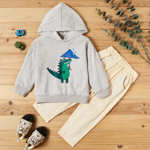2-piece Baby / Toddler Boy Animal Dinosaur Pattern Hoodie and Solid Knitted Pants Set