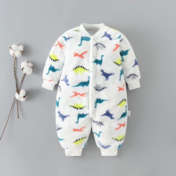 Fleece-lined Dinosaur Pattern Jumpsuit for Baby