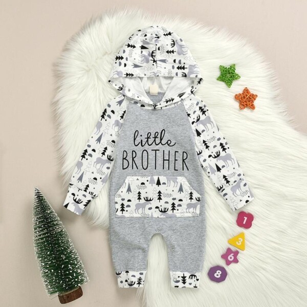 Letter Pattern Hooded Jumpsuit for Baby Boy