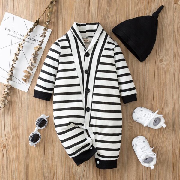 Buy Striped Letter Print Long-sleeved Jumpsuit with Hat at Evababe.com. Our wide selection for Baby Boy Jumpsuit is elegible for free shipping and free returns.