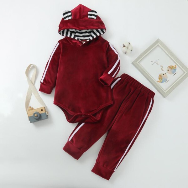 2-piece Velet Hooded Romper & Pants for Baby Boy