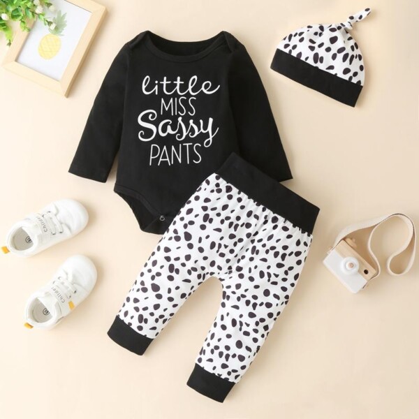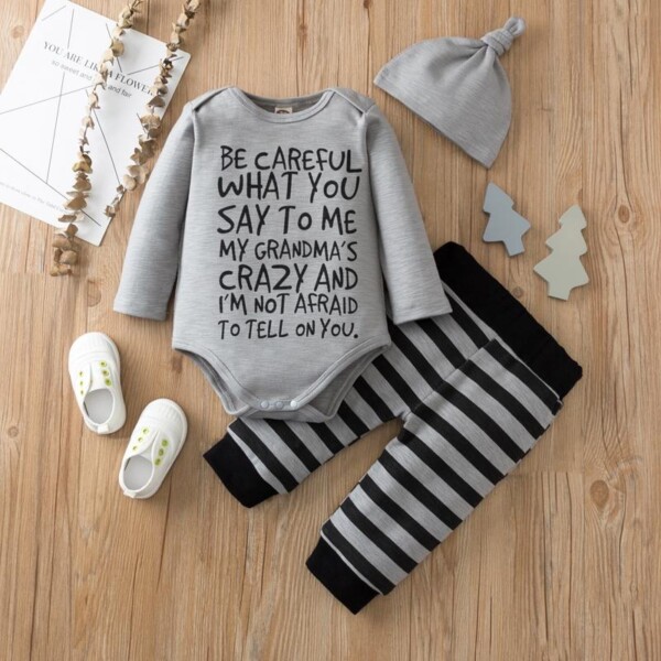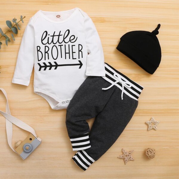 3-piece Letter Pattern Bodysuit & Pants & Hat for Baby Boy