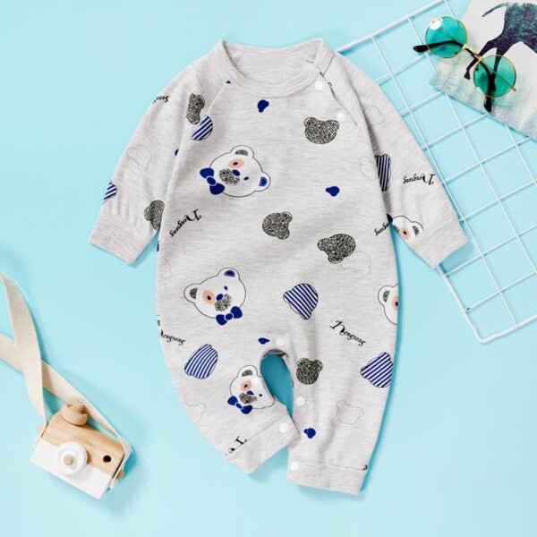 Autumn Infant Baby Cotton Long Sleeve Jumpsuit Cartoon Style