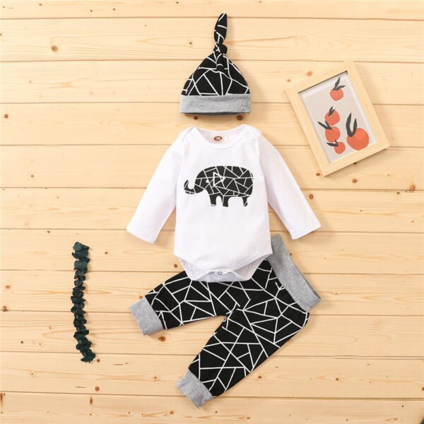 3-piece Elephant Pattern Romper & Pants & Hat for Baby Boy