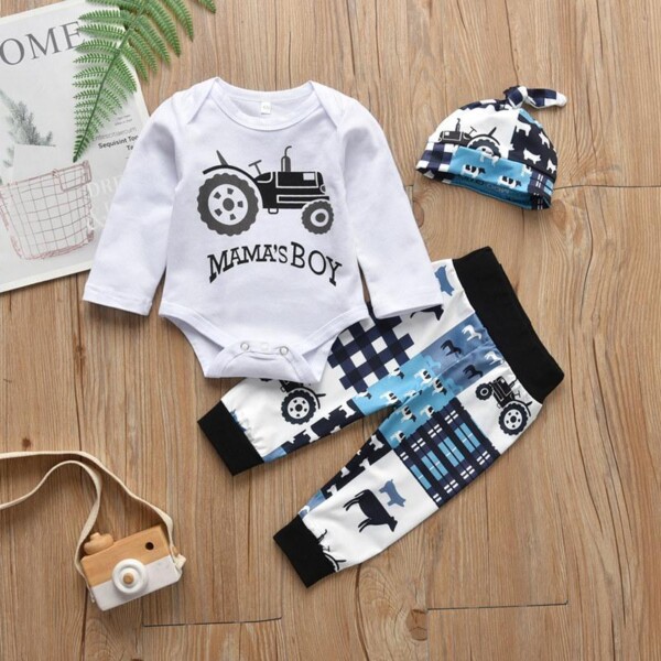 3-piece Vehicle Pattern Bodysuit & Pants & Hat for Baby Boy