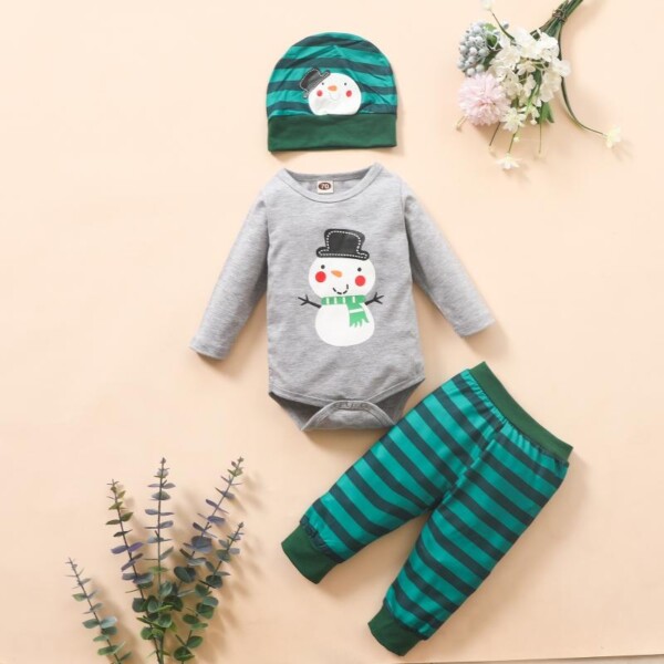 3-piece Snowman Pattern Romper & Pants & Hat for Baby Boy