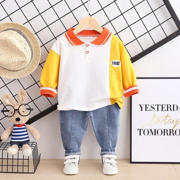 2-piece Color-block Polo Shirt & Short Jeans for Toddler Boy