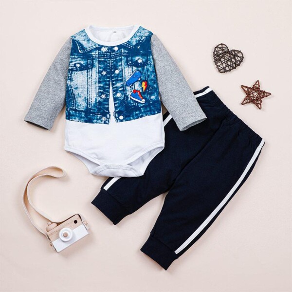 2-piece Color-block Bodysuit & Pants for Baby Boy