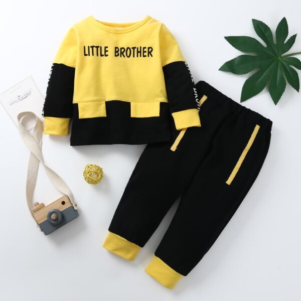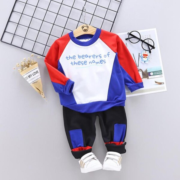 2-piece Color-block Letter Pattern Sweatshirt & Pants for Toddler Boy