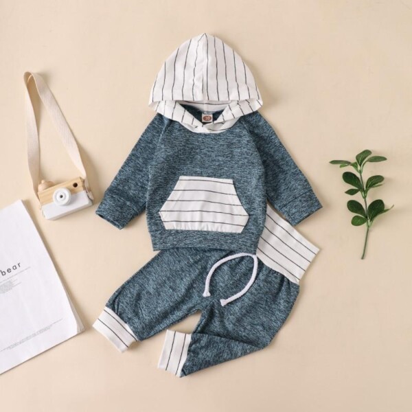 2-piece Color-block Hoodie & Pants for Baby Boy