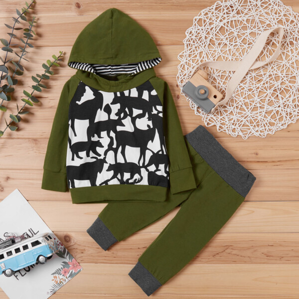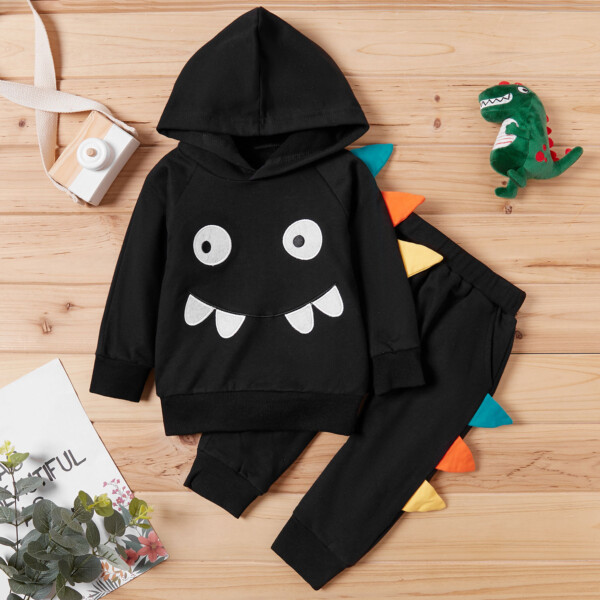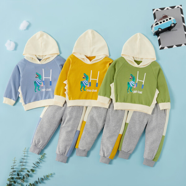 2-piece Baby / Toddler Boy Animal Dinosaur Pattern Hoodie and Solid Knitted Pants Set