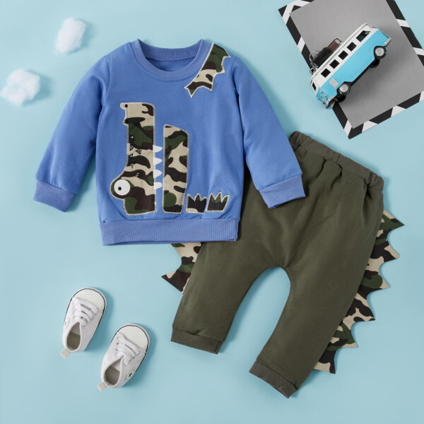 2-piece Baby / Toddler Boy Letter Long-sleeve Top and Camouflage Pants Set