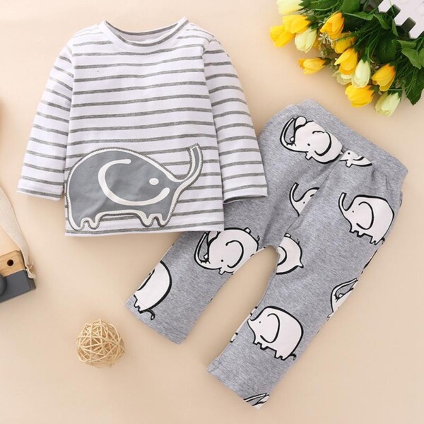 Find out the 2-piece Elephant Pattern Striped Pajamas Sets for Baby Boy at Evababe.com, part of our latest Baby Boy Sets ready to sale online today!