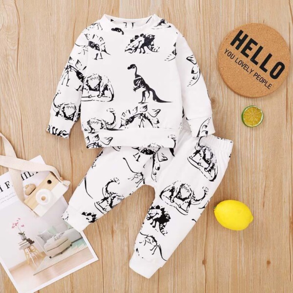 2-piece Dinosaur Printed Sweatshirts & Pants for Baby Boy