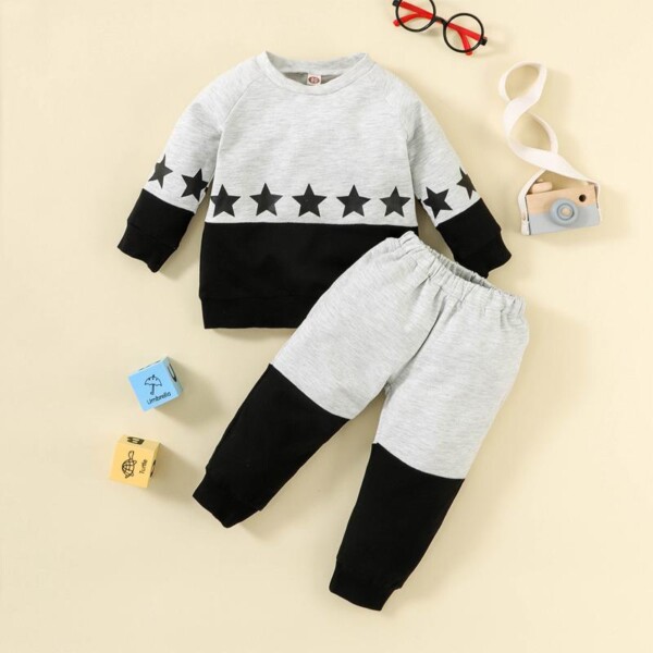 2-piece pentagram Pattern Hoodie & Pants for Baby Boy