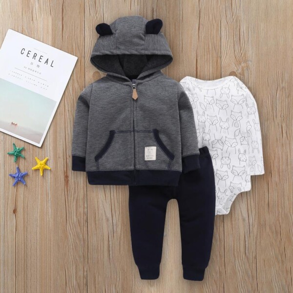 2-piece Solid Bodysuit & Hooded Coat & Pants for Baby Boy