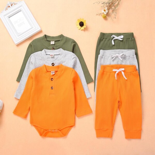 2-piece Solid Pattern Bodysuit & Pants for Baby