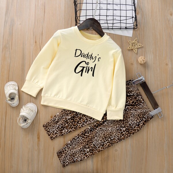 2-piece Baby / Toddler Girl Letter Solid Long-sleeve Top and Leopard Print Pants Set