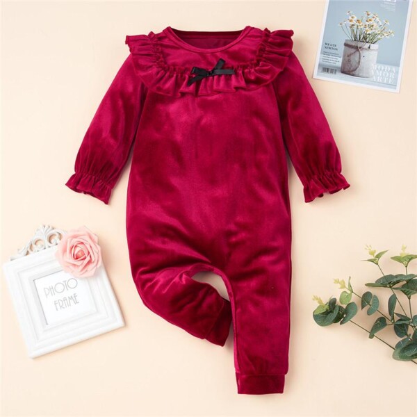 Baby Girl Ruffle Long-sleeved Velvet Jumpsuit