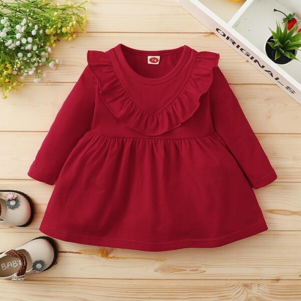Ruffle Crimson Dress for Baby Girl