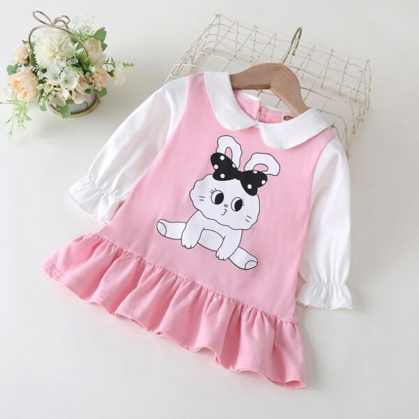 Rabbit Pattern Dress for Toddler Girl