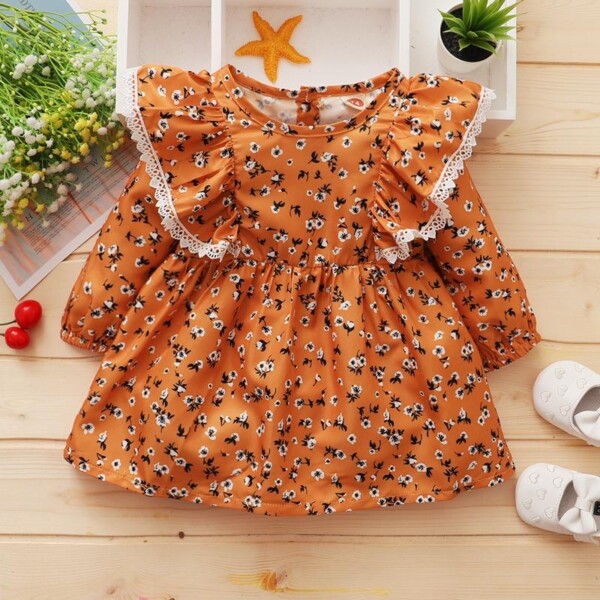 Ruffle Floral Pattern Dress for Baby Girl
