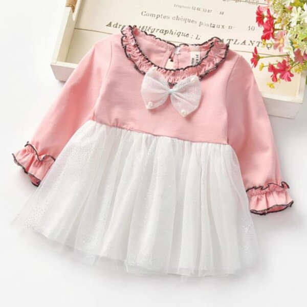 Bow Decor Patchwork Tulle Dress for Baby Girl