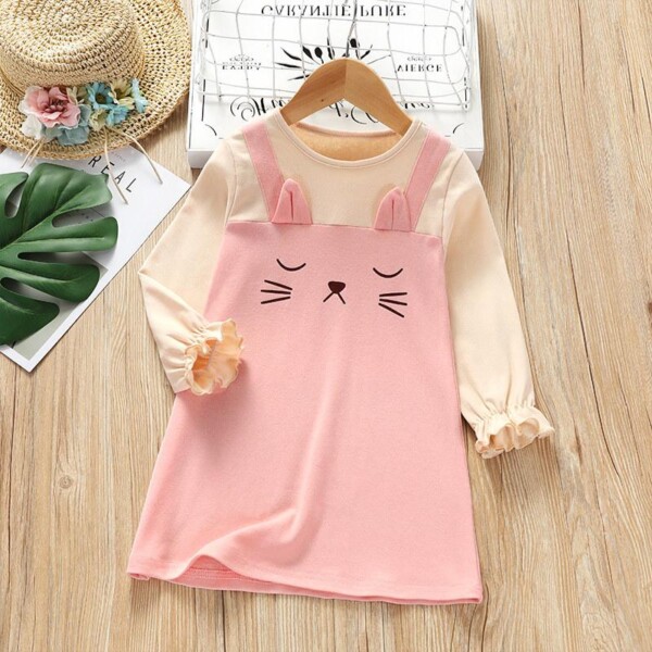 Baby / Toddler Girl Striped Animal Cat Embroidered Pattern Long-sleeve Dress