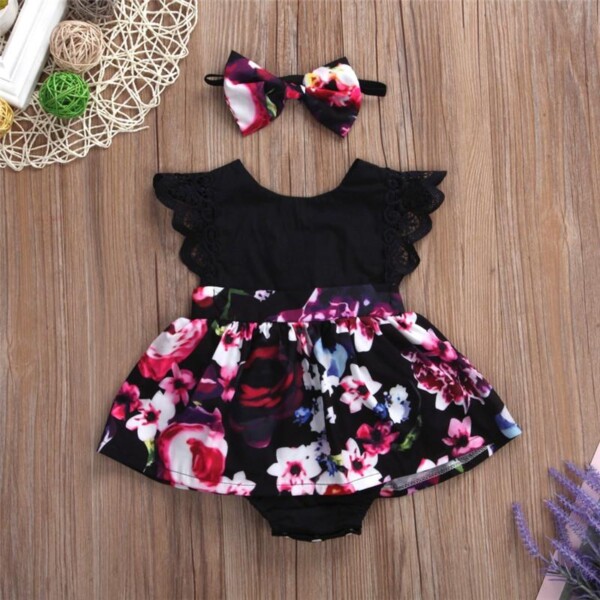 2-piece Floral Printed Bodysuit & Headband for Baby Girl