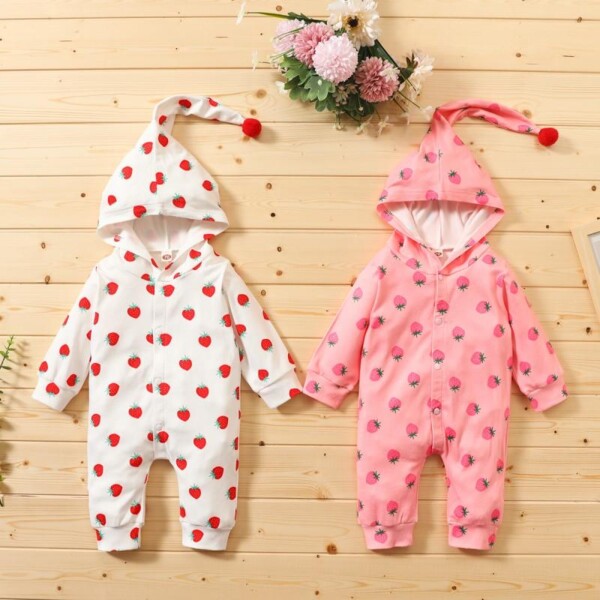 Strawberry Pattern Hooded Jumpsuit for Baby Girl