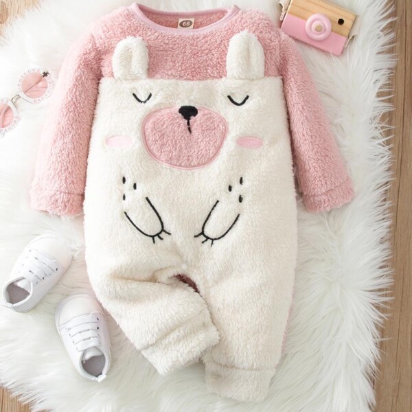 Cartoon Design Flannel Jumpsuit for Baby Girl
