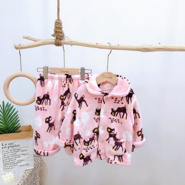 2-piece Cotton Pattern Fleece-lined Pajamas Sets for Toddler Girl