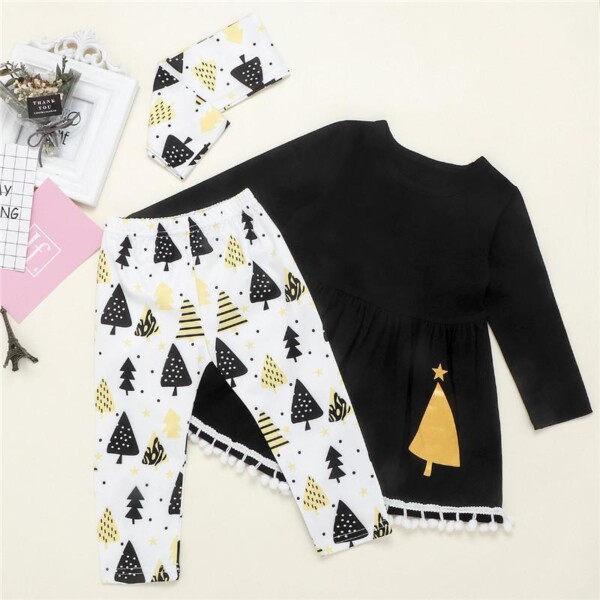 3-piece Christmas Pattern Tops & Pants & Headband for Toddler Girl