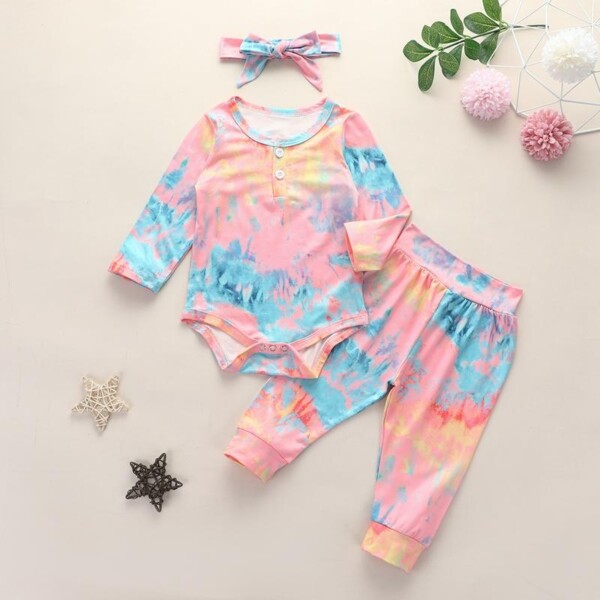 Buy Wholesale 3-piece Tie Dye Bodysuit & Pants & Headband for Baby Girl from China Wholesale, High-quality Baby Girl Sets affordable prices shipping world.