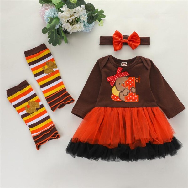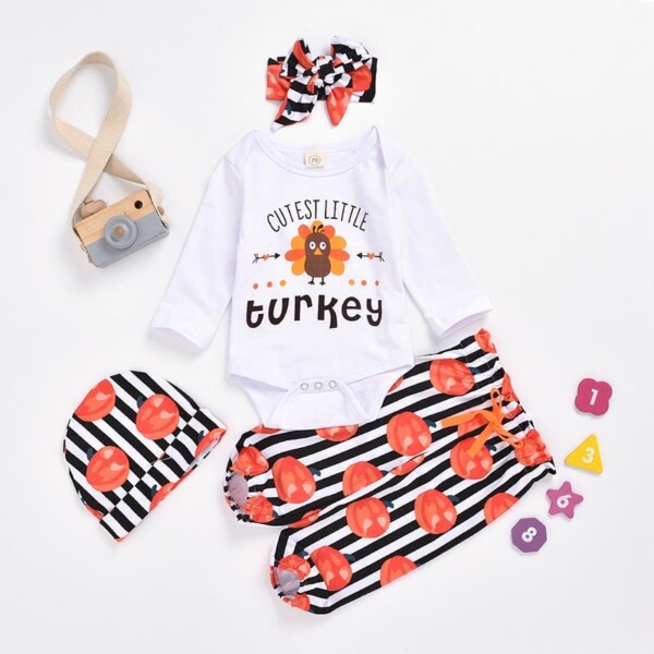 Find out the 4-piece Thanksgiving Pattern Bodysuit & Pants & Hat & Headband for Baby Girl at Evababe.com, part of our latest Baby Girl Sets ready to sale online today!