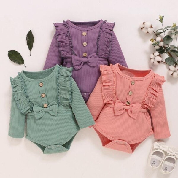 Find out the Bow Decor Solid Ruffle Bodysuit for Baby Girl at Evababe.com, part of our latest Baby Boy Sets ready to sale online today!