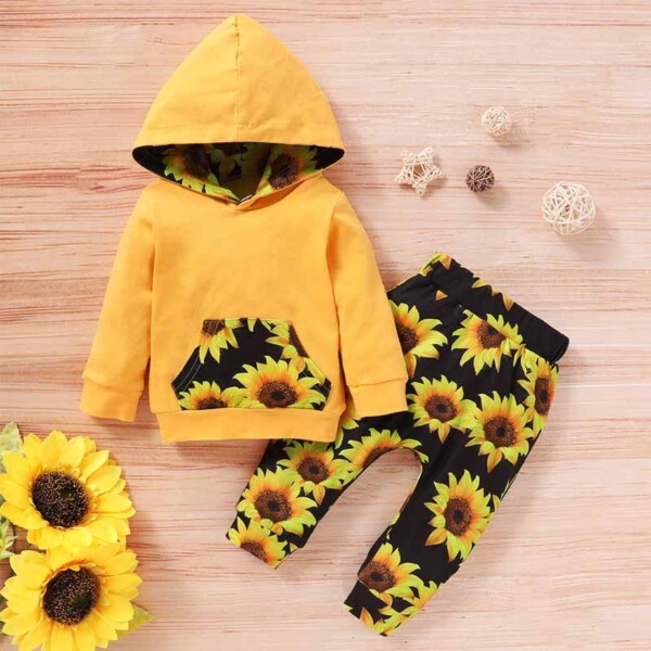 2-piece Sunflower Pattern Hoodie & Pants for Baby Girl