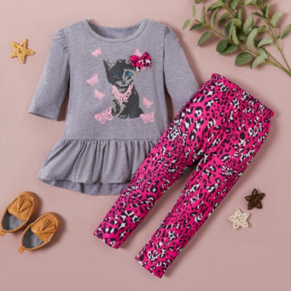 2-piece Sweatshirt & Leopard Pants for Toddler Girl