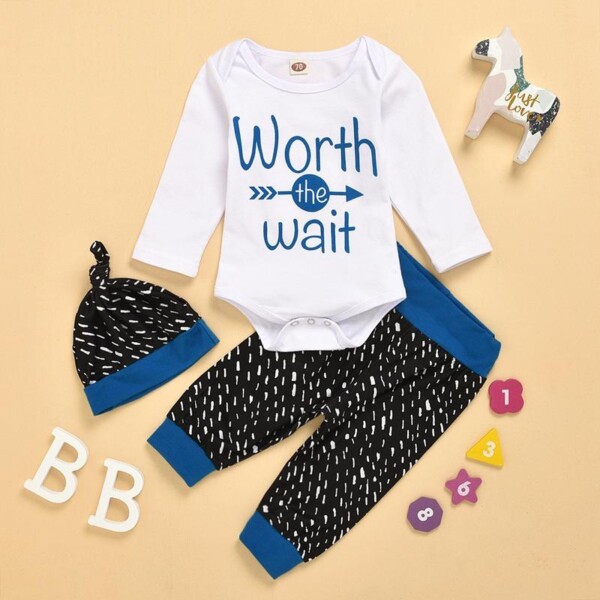 3-piece Letter Pattern Bodysuit & Pants & Hat for Baby Boy