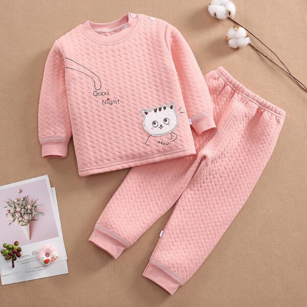 2-piece Cat Pattern Thick Pajamas Sets for Toddler Boy