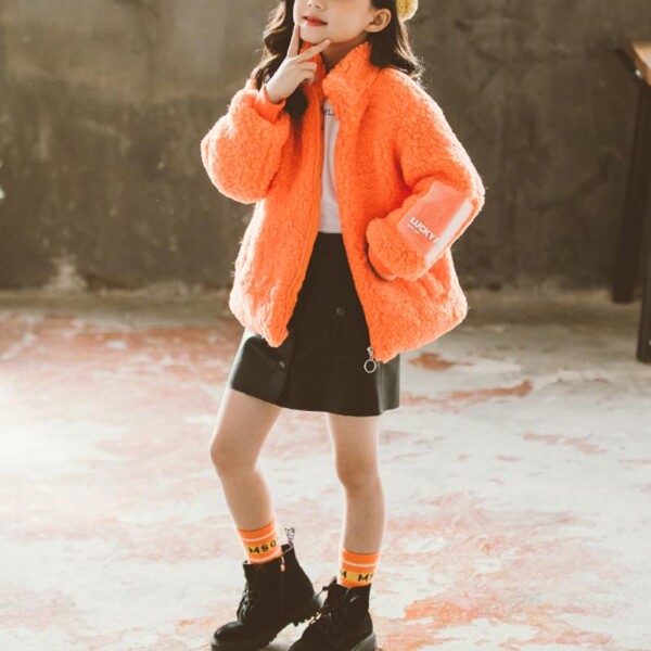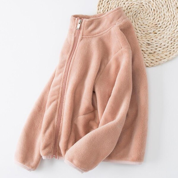Solid Pattern Fleece-lined Jacket for Girl