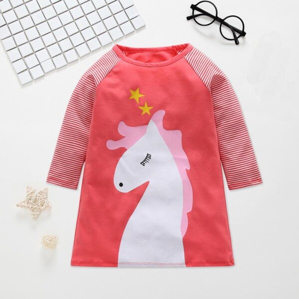 Cartoon Horse Pattern Dress for Toddler Girl