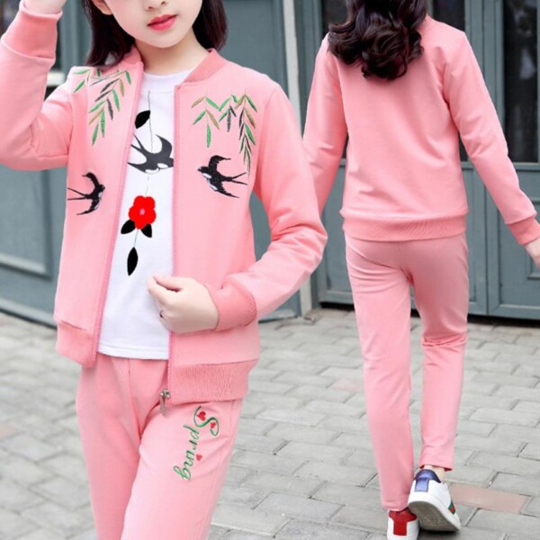 3-piece Swallow Pattern Coat & Sweatshirt & Pants for Girl