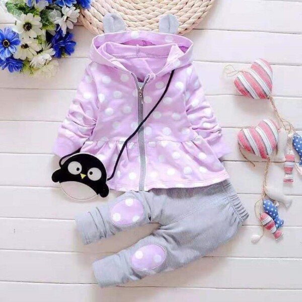 3-piece Polka Dot Coat & Pants & Bag for Toddler Girl
