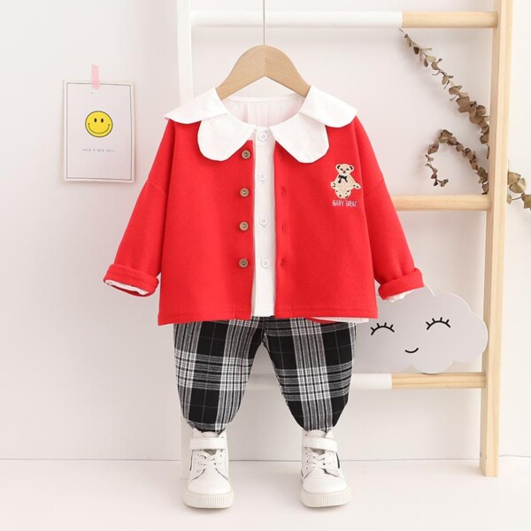 3-piece Coat & Shirt & Plaid Pants for Toddler Girl