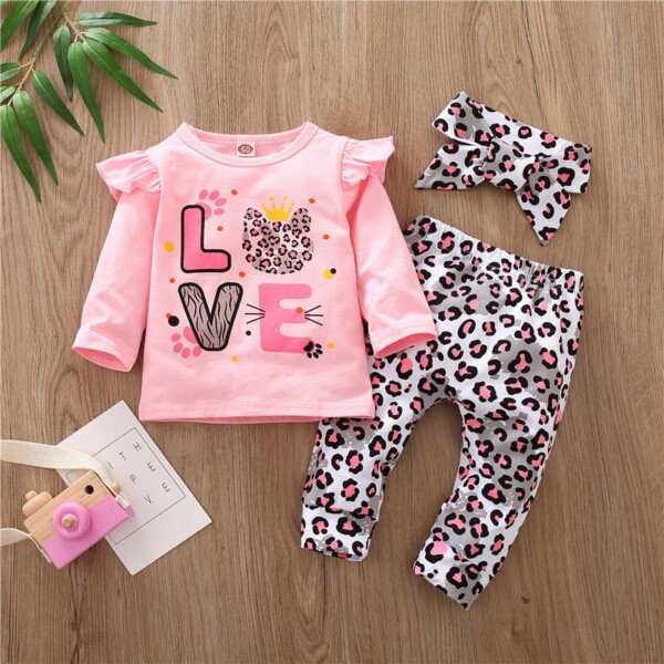 3-piece I Really Love You Top & Headband & Leopard Pants for Baby Girl