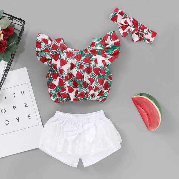 3-piece Watermelon Pattern T-shirt & Shorts & Headband for Baby Girl