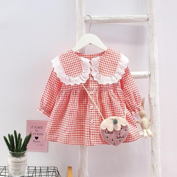 Toddler Girl Cute Plaid Dress with Bag